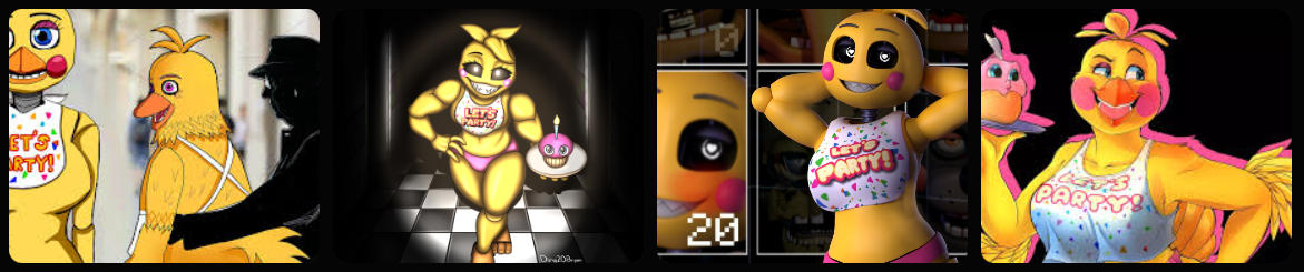 Already with the launch of the game, Toy Chica was at the center of intense debates with respect to her provocative appearance. Toy Chica’s greater breast and hip development and her wearing what appears to be a pair of bikini panties below her skirt further establishes her very quickly within the fan base as the “sexiest” of all the animatronics. Scott Cawthon (the creator of FNAF) later developed the flirtatious and sadistic personality of Toy Chica in games such as Ultimate Custom Night, further declaring her with statements that may be considered very ambiguous and flirtatious, like “You won’t get tired of my voice. Will you?”